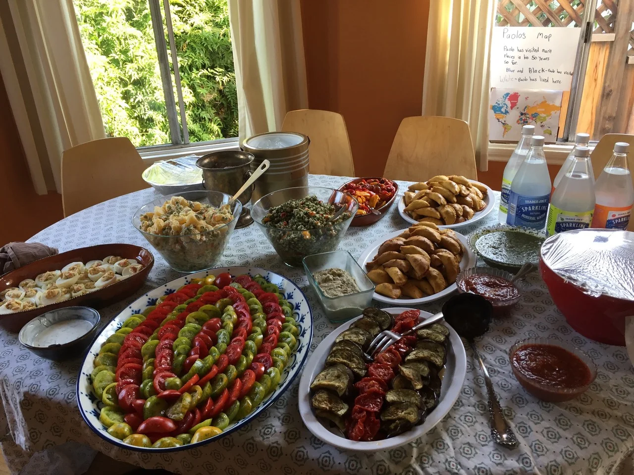 This past weekend I had the honor of cooking a buffet meal for the birthday party for Paolo, one of our CSA members. He and his wife Louise, and their two daughters Francesca and Julianna are our Albany hosts. It was such a treat to work on putting together this menu, which of course highlighted so much growing on the farm at the moment. It was a simple spread which allowed the vegetables to take center stage and shine. The evening reaffirmed my belief that food from stores just never tastes this good. Sure it might often look better, but the flavor is seldom equal. And once again I was reminded that simple food, made with fresh and flavorful ingredients, doesn’t need much fussing. For this meal I made Chimichurri Sauce and a Roasted Tomato Salsa, such great ways to take advantage of box ingredients (the recipes are below).